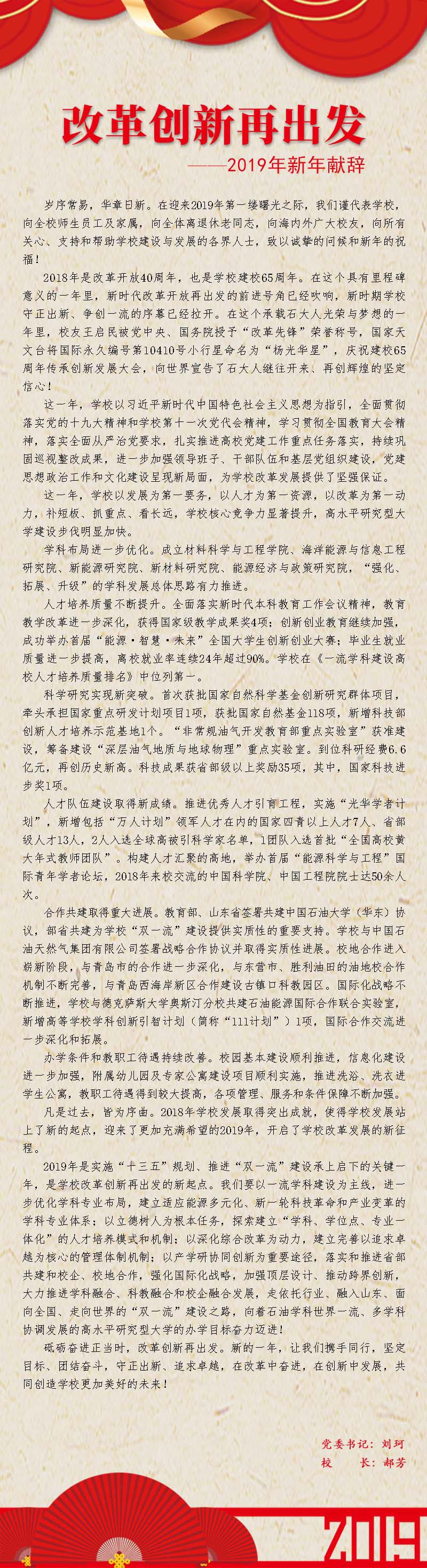 2019年新年献辞:改革创新再出发