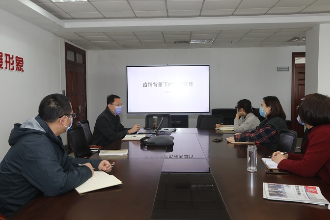3月25日,党委宣传部、新闻中心举办的第四期“一点荟”文宣讲堂举行,党委宣传部副部长刘积舜以《疫情背景下的新闻宣传》为题,与编辑记者们交流探讨疫情背景下新闻报道采写。