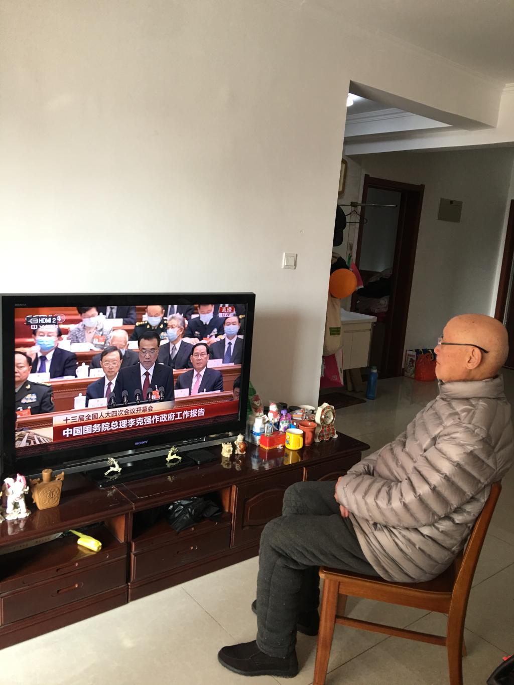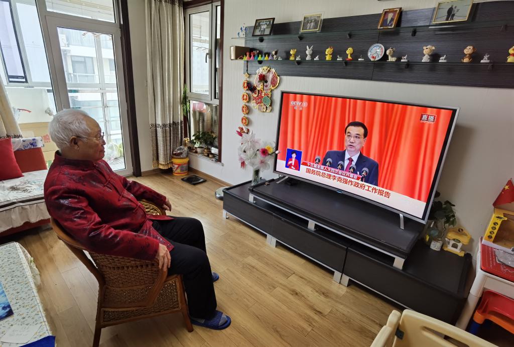 离休干部刘全福收看两会直播