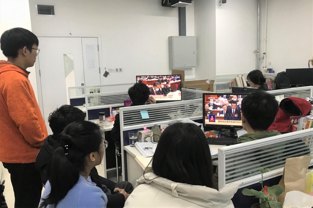 古镇口校区研究生在工作室收看两会直播