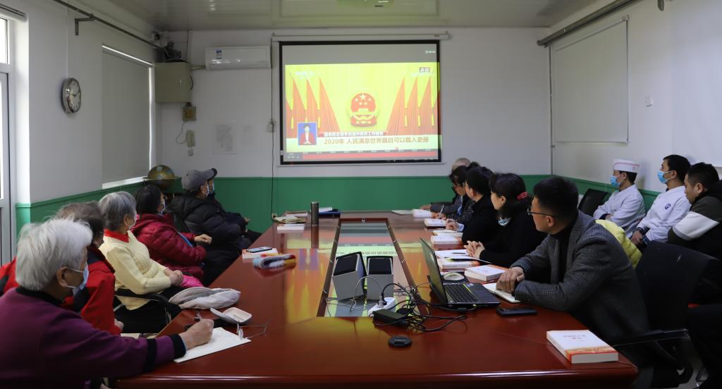 离退休教师在北京离退休工作办公室收看两会直播