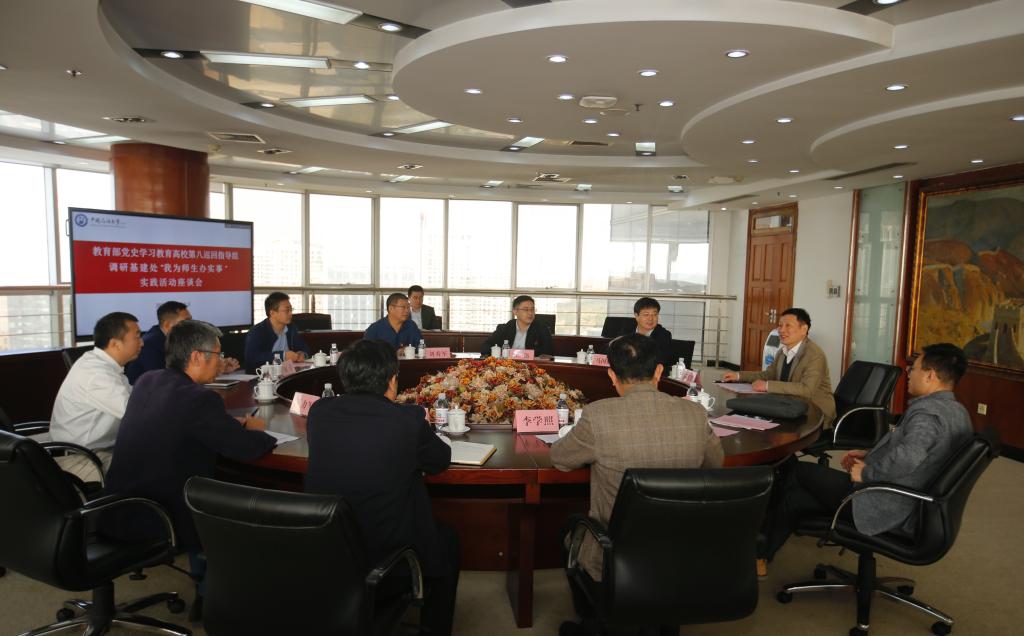 汇报会结束后,巡回指导组分别举行“我为师生办实事”实践活动调研基建处和石油工程学院座谈会,听取相关负责人的工作汇报,了解两个单位“我为师生办实事”实践活动开展情况并对实践活动进行指导。巡回指导组在校期间还列席了学校党委理论学习中心组学习,参观了校史馆,参加了档案馆举办的“红色校史我来讲述”活动。
