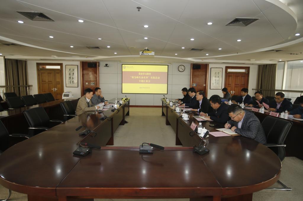 党委副书记万云波主持学校“我为师生办实事”实践活动专题汇报会,学校党史学习教育领导小组办公室主任、党委宣传部部长马国顺从谋划部署总体情况、工作进展及成效、下一步工作举措三个方面汇报学校“我为师生办实事”实践活动开展情况。