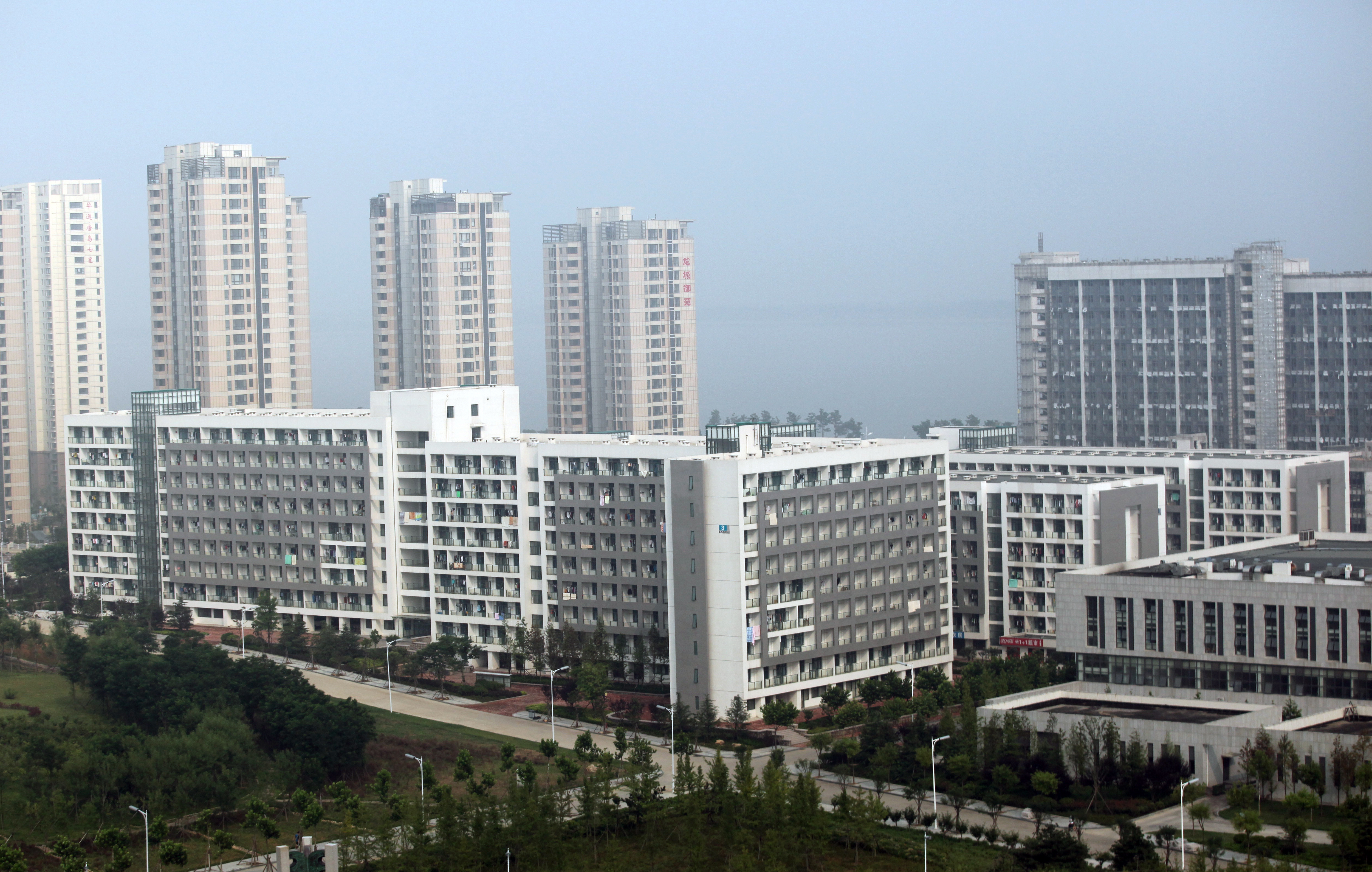 1--9号公寓西临荟萃广场和荟萃餐厅,东面与图书馆俯仰相对,建于2004年,总造价6241.34万元,由石大建筑规划设计院设计。其中1、2、3号公寓呈非对称“U”形,沿风华路由北向南依次排开,建筑面积均为7806平方米;4—9号公寓呈“一”字形,沿荟萃路由北向南依次排开,4、6、8号公寓建筑面积均为4531平方米,5、7、9号公寓建筑面积均为5668平方米。10-17号公寓通过过街长廊两两相连,沿黄河路由北向南依次排开,西面是城市河流--岔河,其中10、11号公寓建于2005年,建筑面积26006平方米,工程造价3771万元;12、13号公寓建于2006年,建筑面积26006平方米,工程造价3607.17万元;14、15号公寓建于2007年,建筑面积26006平方米,工程造价3630.02万元;16、17号公寓建于2008年,建筑面积26060平方米,工程造价4805.6万元。18、19号公寓连为一体,呈“U”型,位于华东路以南、风华路以西,建于2011年,建筑面积36080平方米,工程造价8310.69万元。研究生公寓呈“L”,位于小黄山南端,其中1、2号楼建于2010年,建筑面积39357平方米,工程造价9480.66万元;3号楼建于2011年,建筑面积28145平方米,工程造价7569.61万元。学生公寓每个房间实行标准化配备,每栋公寓周边环境都进行了硬化、绿化和美化建设。