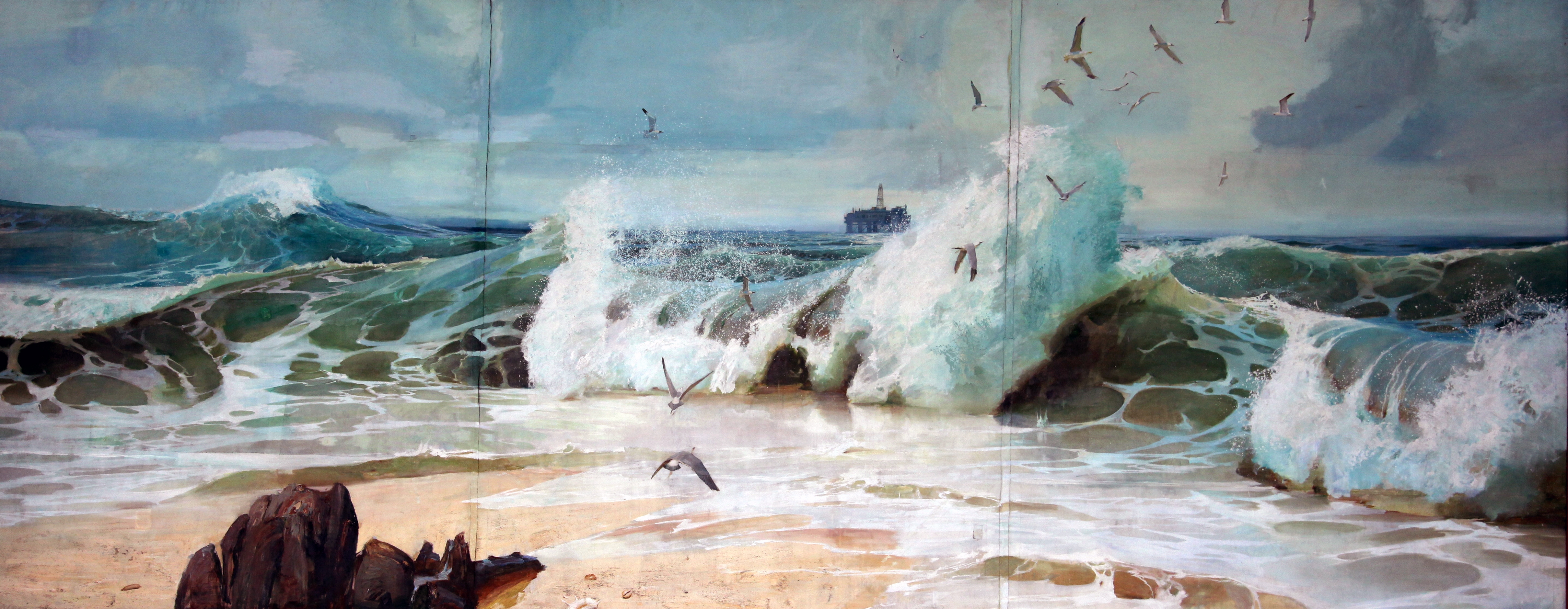 《春鸥戏海》油画