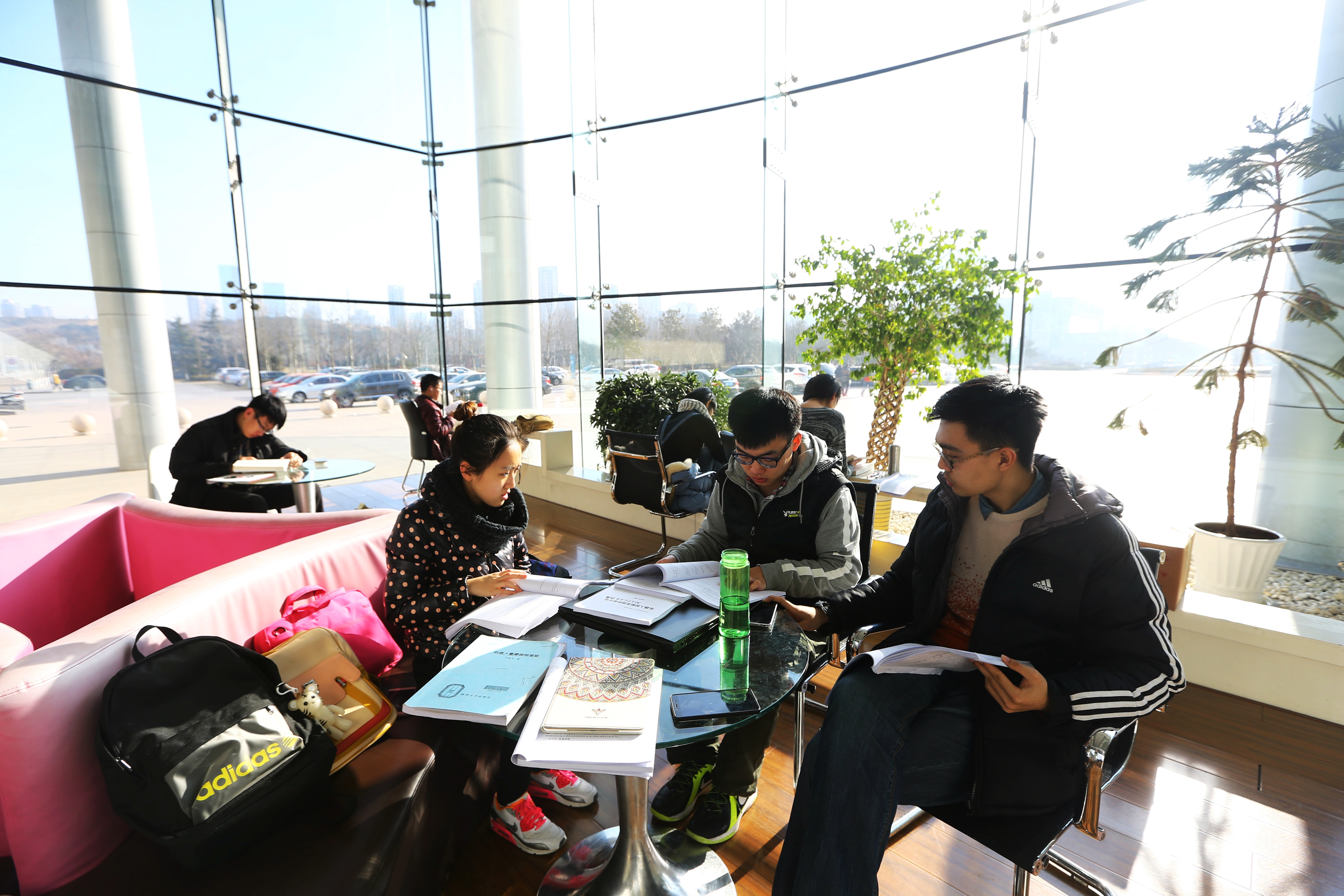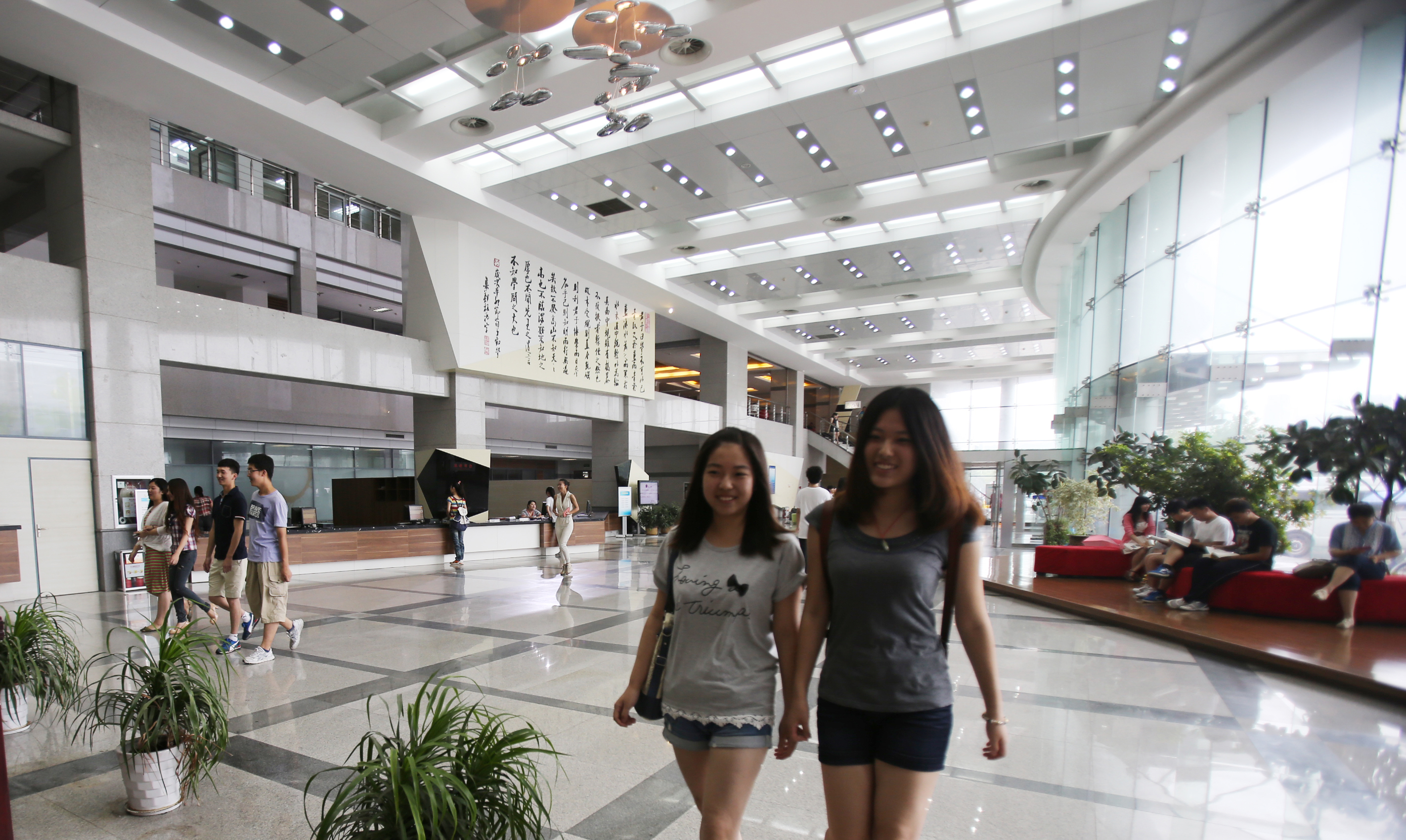 2011年,学校完成办学的结构性调整,青岛校区学生数大幅度增加。为此,图书馆在楼内布局也进行了调整。B区书库维持现状,A区西部1—12层为图书馆,其中4层全楼贯通,为科技期刊阅览室和过刊库;5层全楼贯通,为电子阅览室和电子库房。经过调整后,A区使用面积达9800平方米,增加2600平方米。总馆使用面积约1.97万平方米,加上公共面积1.01万平方米,总建筑面积约3万平方米。同时进行了图书馆环境改造工程,由当时受聘为福州大学创意设计研究所副所长的台湾设计师温国勋设计完成。该工程对一楼大厅、大楼西部各厅、各书库的环境进行了改造,其中一楼大厅增设总还书功能。此外,全部启用B区第5层书库,增建400个座的电子阅览室和12个研读区,阅览座位从1200座增加到3700座。大楼南门增挂了图书馆馆牌,从南门出入图书馆,从东门出入行政办公楼。目前图书馆总馆和东馆建筑面积共计4.7万平方米,设有3个书库、4个阅览室以及阅览区、研读区、休读区、研讨区、视听鉴赏区、电子阅览区等功能区,配备阅览座位5800余个。