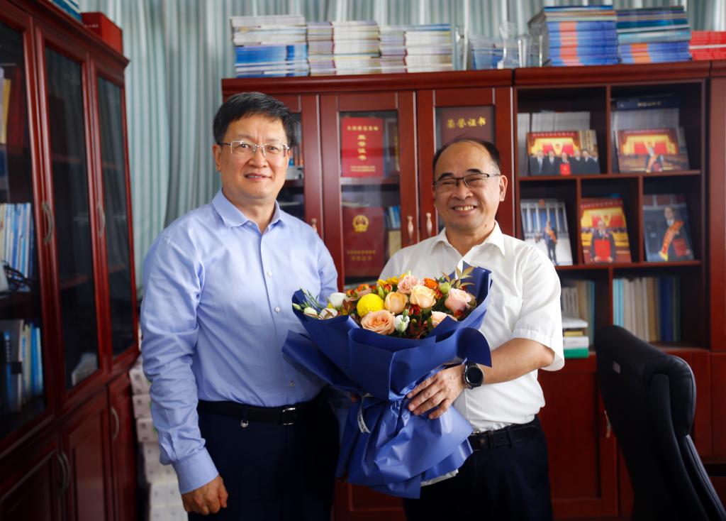 9月9日上午,王勇一行先后看望慰问国家杰出青年科学基金获得者、高端化工与能源材料研究中心主任智林杰教授,全国优秀教师、全国高校黄大年式教师团队负责人印兴耀教授,给他们送上鲜花和礼物,向他们致以节日的祝福和崇高的敬意,感谢他们长期以来为学校发展做出的贡献。智林杰、印兴耀感谢学校的关怀和支持,表示将不忘立德树人初心,以更加饱满的热情投入到工作中,为社会培养更多优秀人才,为推动学校事业高质量发展做出新的更大贡献。