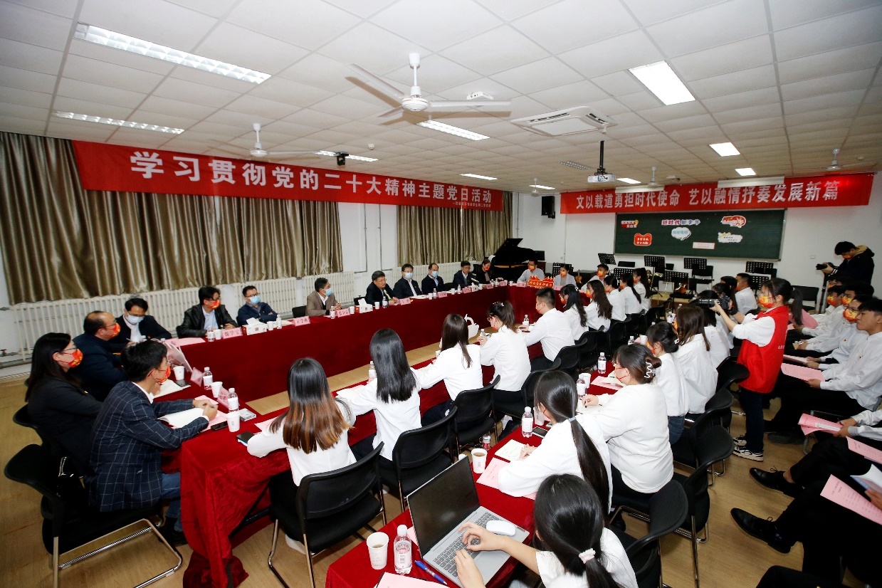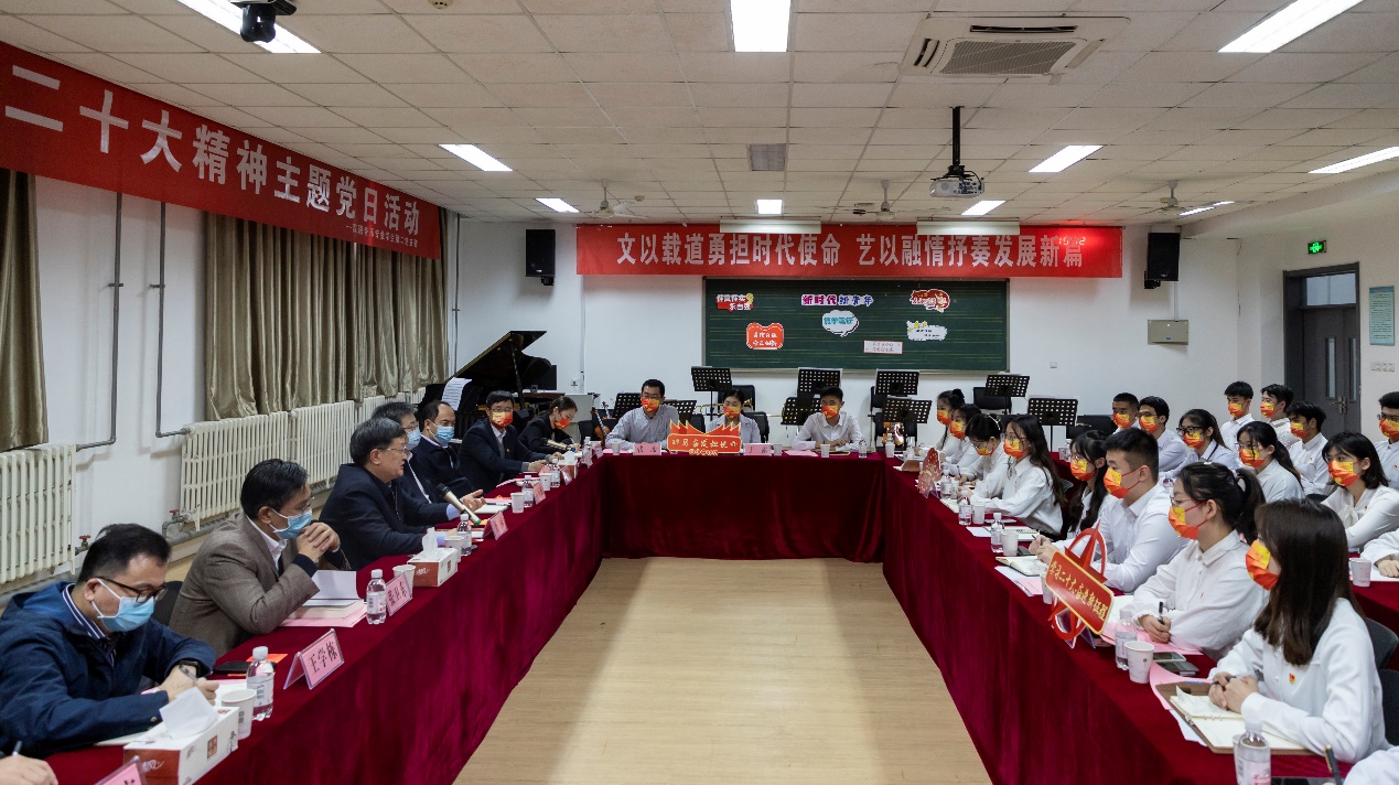 为深入学习贯彻党的二十大精神,11月16日,文法学院汉语音乐专业学生第二党支部在音乐系129教室开展以“文以载道勇担时代使命,艺以融情抒奏发展新篇”为主题的学习贯彻党的二十大精神主题党日活动。学校党委书记王勇亲临现场进行指导,学校党委副书记马国顺,党委常委、党委组织部部长张卫东,党委学生工作部(武装部)专职组织员高平发参加活动。活动由学院党委书记姚成郡主持,院长王学栋等学院班子部分成员,教师代表及汉语音乐专业学生第二党支部成员参加。