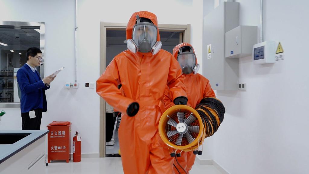 开展危化品泄漏应急处置及逃生演练 王晔摄影
