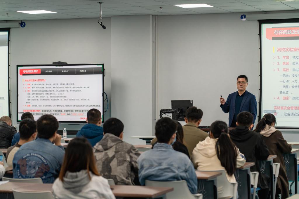 实验室管理处副处长成宏涛作实验室典型安全事故案例分析专题讲座 王晔摄影