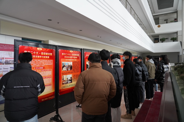 近日,储运与建筑工程学院在工科D大厅制作展出“学习二十大·奋进新征程”为主题的学生党支部学习成果展,展览涵盖了学院8个本科生党支部、12个研究生党支部的学习成果,展览作品聚焦主题、形式多样,既有理论学习的心得体会,又有结合专业特色和个人成长发展实际的感悟,展览还通过学院电子宣传屏、微信公众号等平台渠道同步推送,线上线下同频共振。