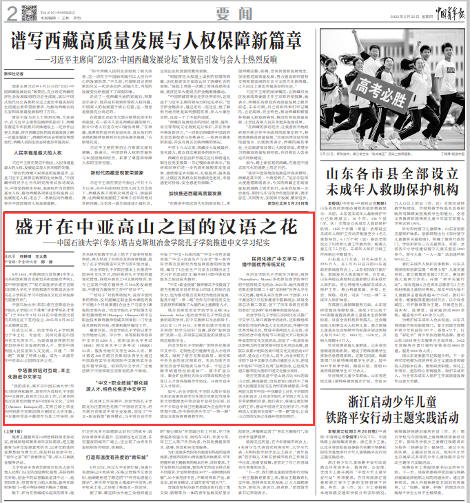 5月25日,中国青年报以《盛开在中亚高山之国的汉语之花》为题报道bwin·必赢(中国区)官方网站-officialswebsi(华东)塔吉克斯坦冶金学院孔子学院推进中文学习的积极做法和成效。