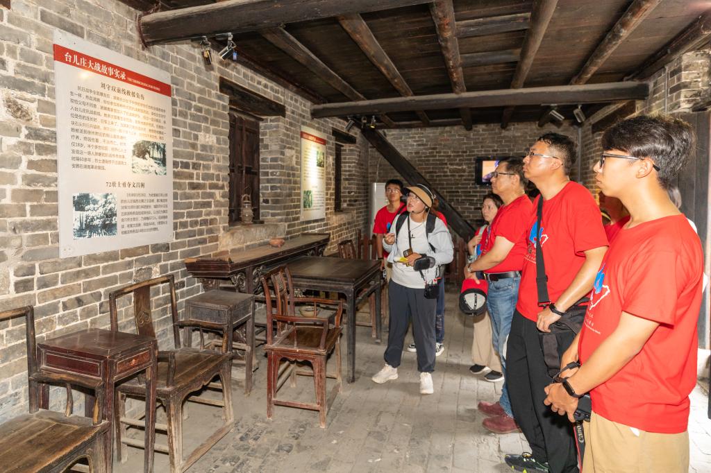 在台儿庄大战纪念馆,营员们重温台儿庄战役的历史,缅怀先烈丰功伟绩。研学营成员通过大量的原始影片和历史遗物,再次回顾了台儿庄战役的惨烈画面,看到了中华民族紧密团结、同仇敌忾、不畏牺牲、浴血奋战的画卷。云林科技大学的简辰霖被无数英雄的民族大义所震撼,写下三行诗:“华夏土地不可丧,台儿庄英烈血成行,和平难可贵莫相忘。”表示希望和广大青年学子一起继承先烈遗志,弘扬抗战精神,为两岸共同发展做出贡献。