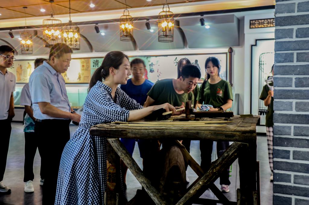 在安徽宣城泾县,化学化工学院翰墨飘香实践队跟随着大国工匠周东红的脚步,一起体验了宣纸制造的流程,“我终于看到了我们平时用的宣纸是如何被造出来的了!”看着眼前的师傅手工制浆、捞纸等流程,实践队员张景玉感慨道,“每一道的工序都要认真地去把握,造纸是一个磨炼人的过程,需要我们细细去品味。”宣城市博物馆内,实践队员通过参观学习,了解到文房四宝的典故和制作过程。在感悟中华文化博大精深的同时,实践队员发现,打造地区专属的旅游文化区,将新型的创意设计融入非遗文化,形成系列极具地域特色的文化产品,能够有效地推动乡村文化产业发展,助力乡村振兴战略。