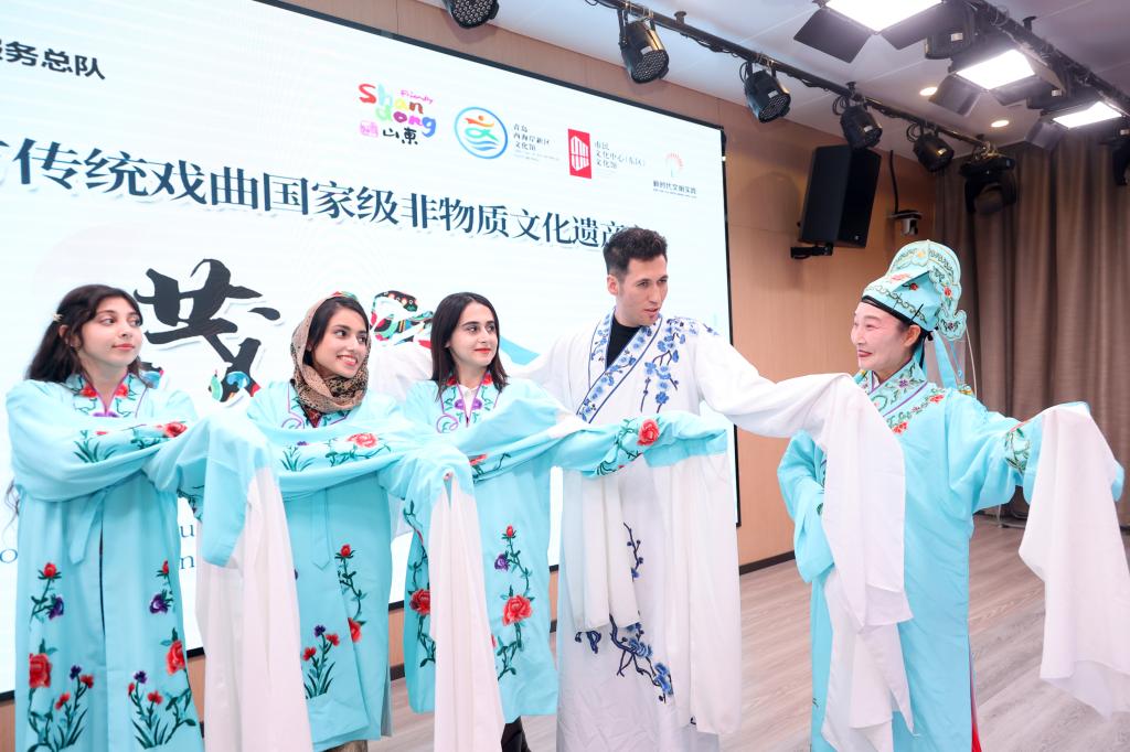 在西海岸新区市民文化中心,留学生深刻体验中华传统绘画、书法、剪纸艺术作品以及胶州秧歌舞、啻善拳、茂腔等本土非物质文化遗产的特有魅力,并在中心教师的指导下研学中华传统文化。