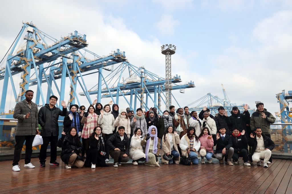留学生先后参观西海岸新区城市之窗展厅、青岛港自动化码头、西海岸新区市民文化中心,领略中华优秀传统文化的独特魅力,感悟中国式现代化的生动实践。