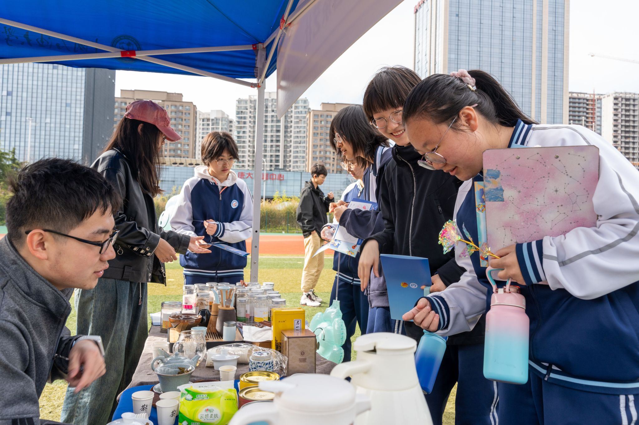 西海岸第一中学学生体验文茗茶艺社摊位活动 潘浩摄影