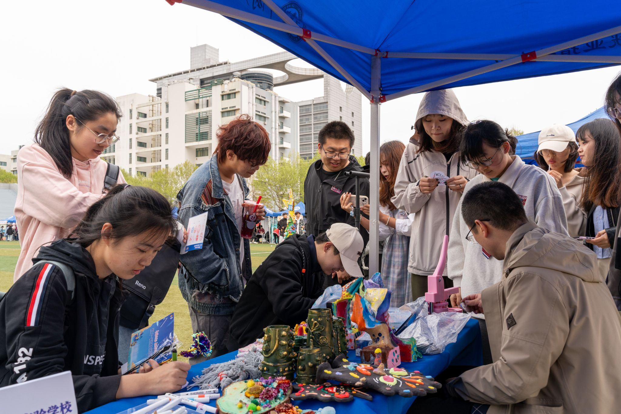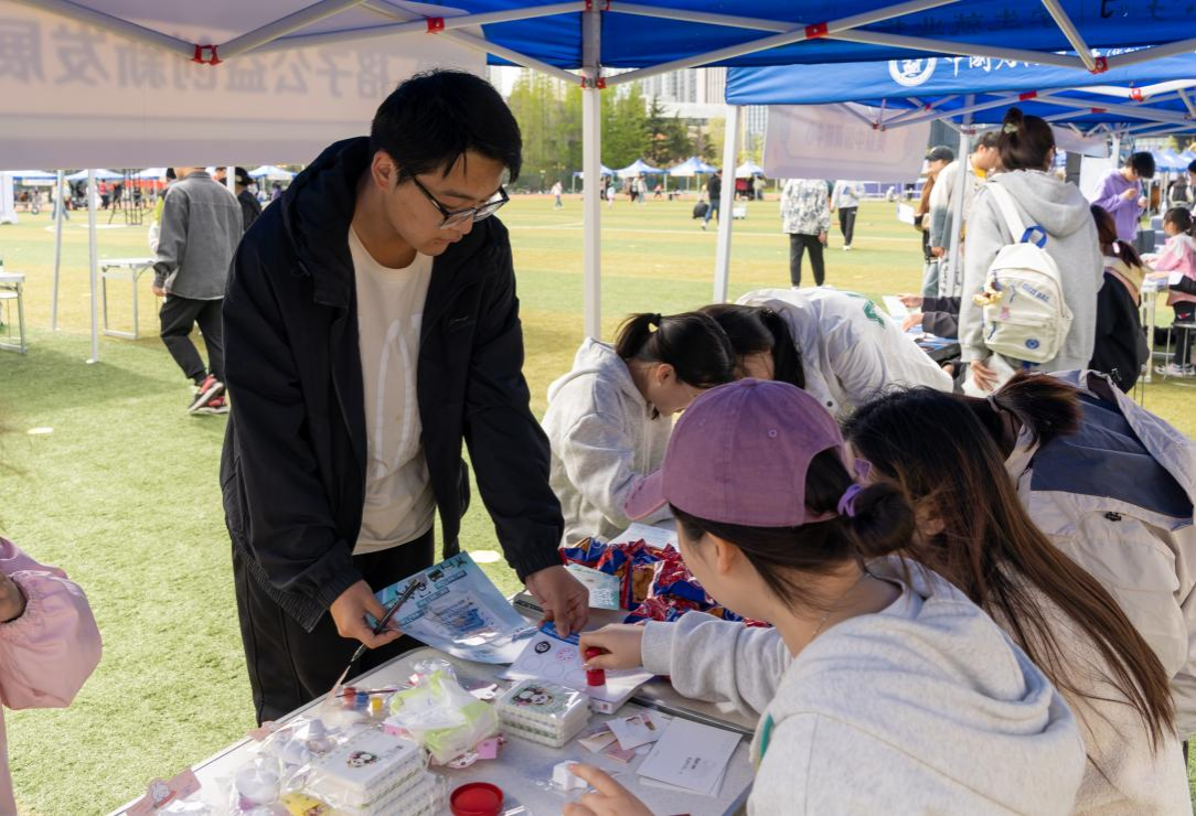 75个社团齐聚于田径场举行游园会,思想政治、文化体育、学术科技、志愿公益四种类型的社团结合自身特色,全方位、多角度地进行展演。主舞台上,随机舞蹈、红歌校歌接力唱、诗词接龙、接力画轮番登场,现场学生纷纷上场大展才华。“之前没有学过绘画,但在这次游园会热闹的气氛下我试着和大家一起完成了一幅画,非常难忘!”材料类2023级本科生张友亮表示。