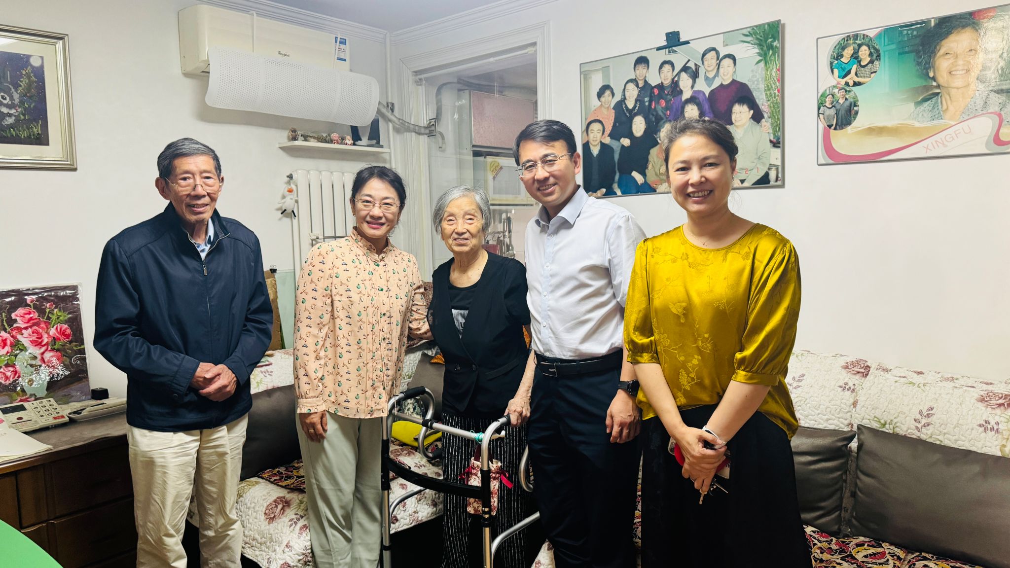 北京离退休工作办公室人员走访慰问“优秀共产党员”迟元苓老师和部分病重住院老教师,向为学校建设发展默默付出、无私奉献的教育工作者致以崇高的敬意和真挚的祝福。94岁高龄的杨淑昌老师摔倒骨折,通过术后康复锻炼,身体恢复良好,他对学校无微不至的关怀感到无比温暖幸福,表示将在康复后继续为学校发展贡献银发力量。