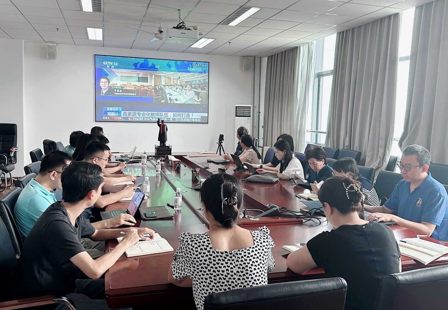 教师节前夕,海洋与空间信息学院利用“每周有约”组织全院教师研讨学习《中共中央 国务院关于弘扬教育家精神加强新时代高素质专业化教师队伍建设的意见》精神,表示将大力弘扬、自觉践行教育家精神,牢记责任使命,提升育人能力,潜心教书育人,服务学生全面化、个性化、最大化成长,为加快教育现代化、建设教育强国、实现中华民族伟大复兴作出新时代人民教师应有的贡献。