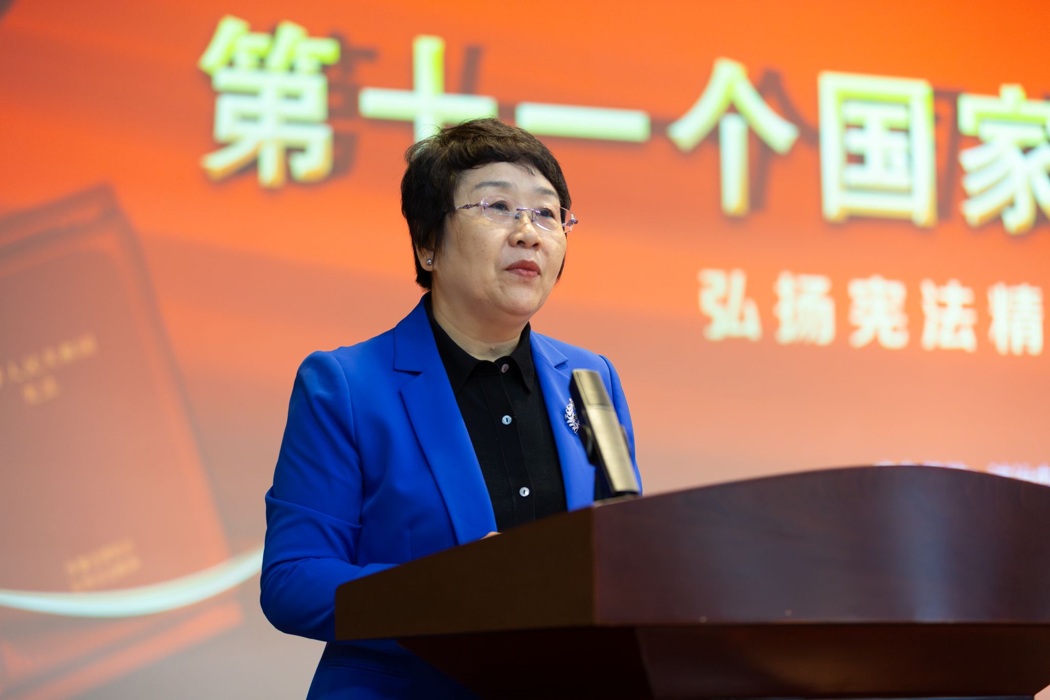 张玲玲在讲话中回顾新中国成立以来宪法的颁布及修订历程,阐述宪法修正案对高校教育的深远影响,指出在新时代背景下,高校要不断适应和落实宪法的新要求。她指出,今年是新中国第一部宪法颁布70年,70年来,在党中央领导下,以宪法为核心的中国特色社会主义法律体系更加成熟完备,宪法使得广大人民群众有法可依、有法必依、有法可循。“未来的中国属于青年,法治中国的建设依靠青年。希望你们明法于心,守法于行,扎根人民,奉献国家,以青年之力,铸就法治辉煌。”她殷切寄语广大青年师生。