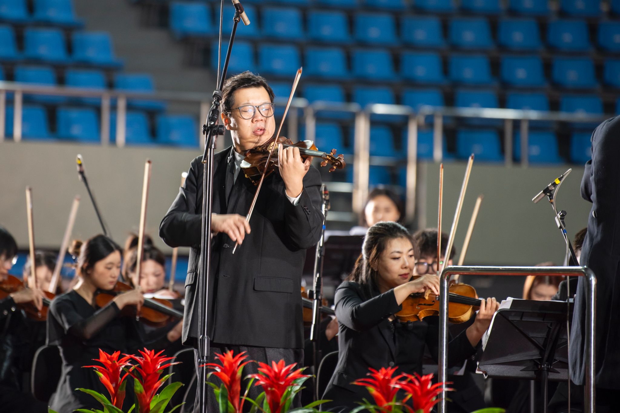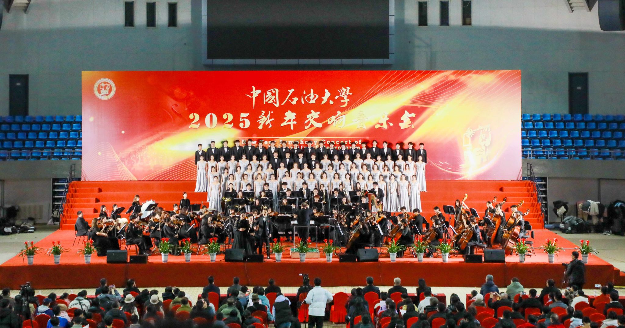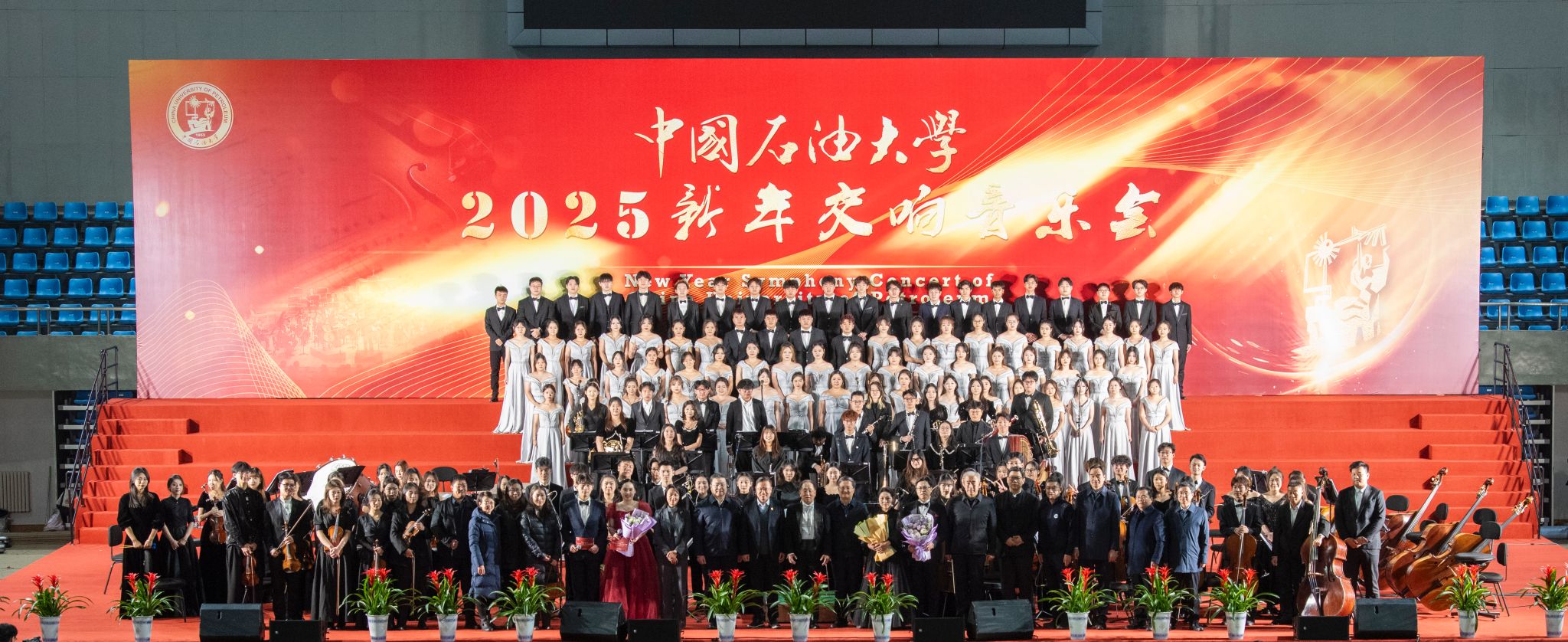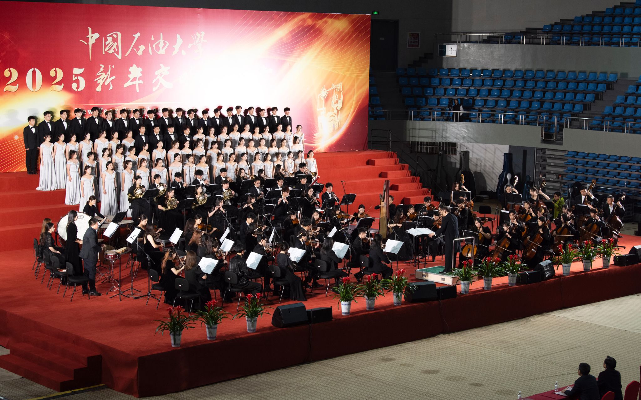 12月16日,bwin·必赢(中国区)官方网站-officialswebsi2025新年交响音乐会在体育馆隆重举行,为观众带来了一场精彩纷呈的视听盛宴。学校党委书记王勇,党委副书记万云波,副校长周鹏,党委副书记马国顺,党委常委张卫东、赵放辉,校长助理于连栋、王效美出席音乐会,师生共3000余人观看演出。