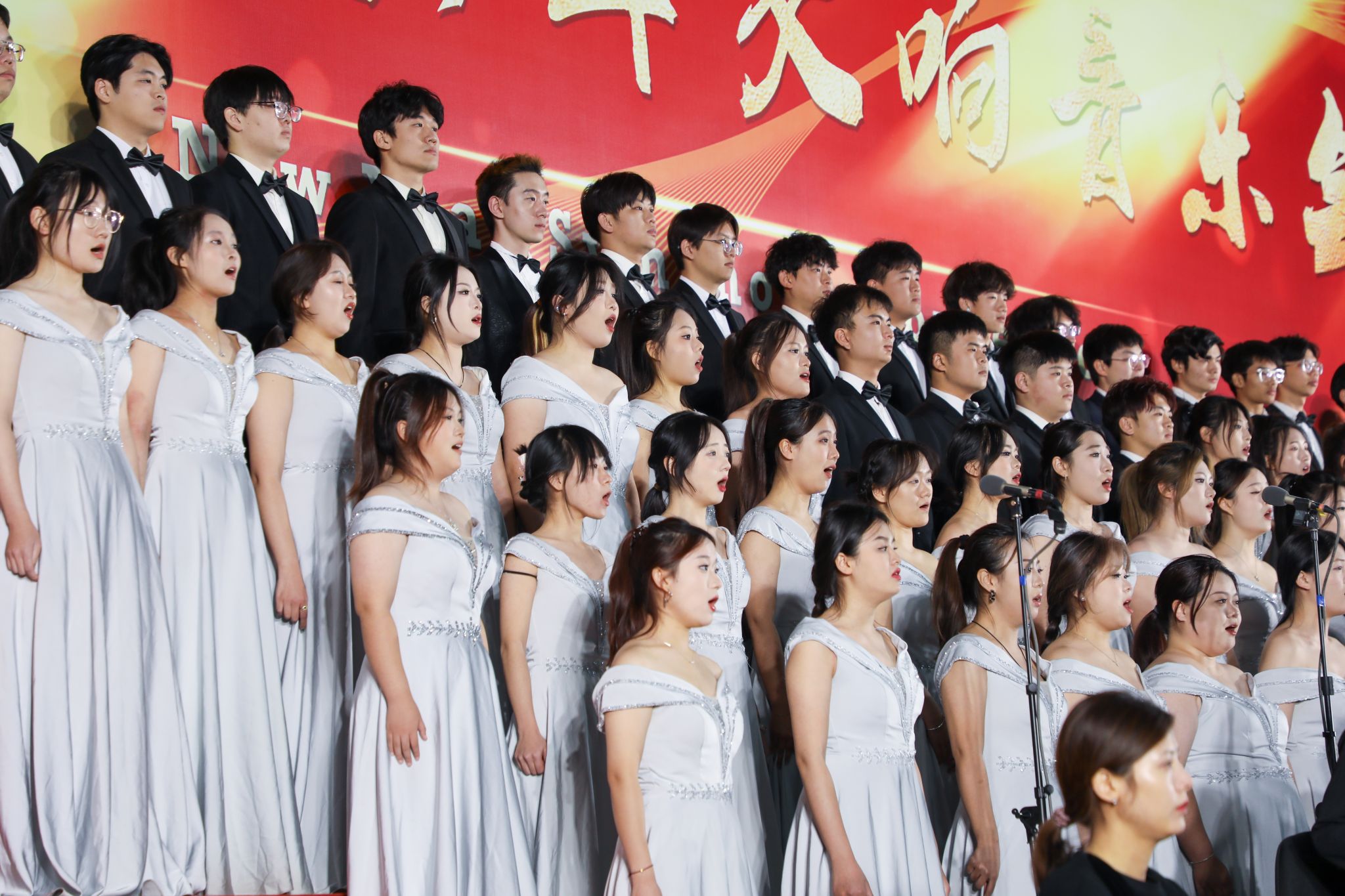 音乐会曲目丰富多样、中西融合,演奏者或以乐器独奏,或以二重唱,或以大合唱,演奏了9首不同国家、不同时期的经典音乐作品,带领观众开启了一场震撼的音乐之旅。《费加罗的婚礼》序曲作为开场曲目,快慢有秩,时疾时徐,欢快的旋律中充满轻松与愉悦;《胡桃夹子》组曲选段旋律活泼灵动,流露出俄罗斯的神秘与浪漫;女声合唱《水仙女》选曲“月亮颂”婉转动人,展现了捷克音乐的的浪漫与深情,激发听众内心深处最真挚的情感;歌剧《茶花女》的经典选段“饮酒歌”旋律高昂,乐队全情演奏,各声部和谐共鸣,深情而热烈的二重唱将幸福与欢乐尽情挥洒于音符之间;合唱《在灿烂阳光下》悠扬悦耳,彰显了与时代同频共振的步伐和对祖国的无限热爱。或悠扬舒缓,或激昂奋进,现场的热情被跃动的音符点燃,掌声雷动。