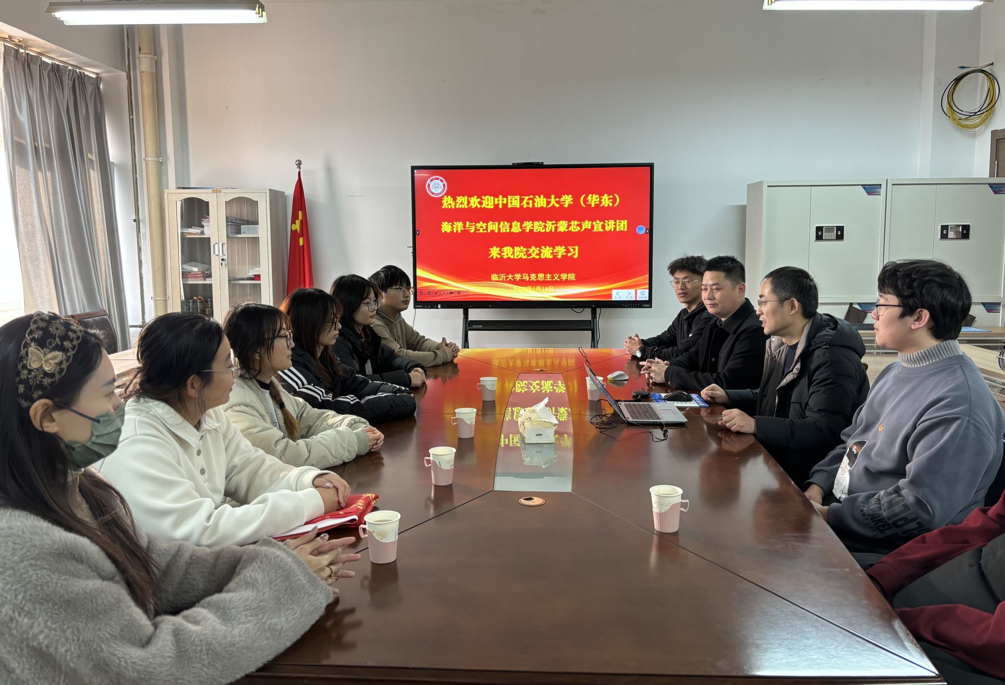 “沂蒙芯声”宣讲团与相关负责人交流 韩含摄影