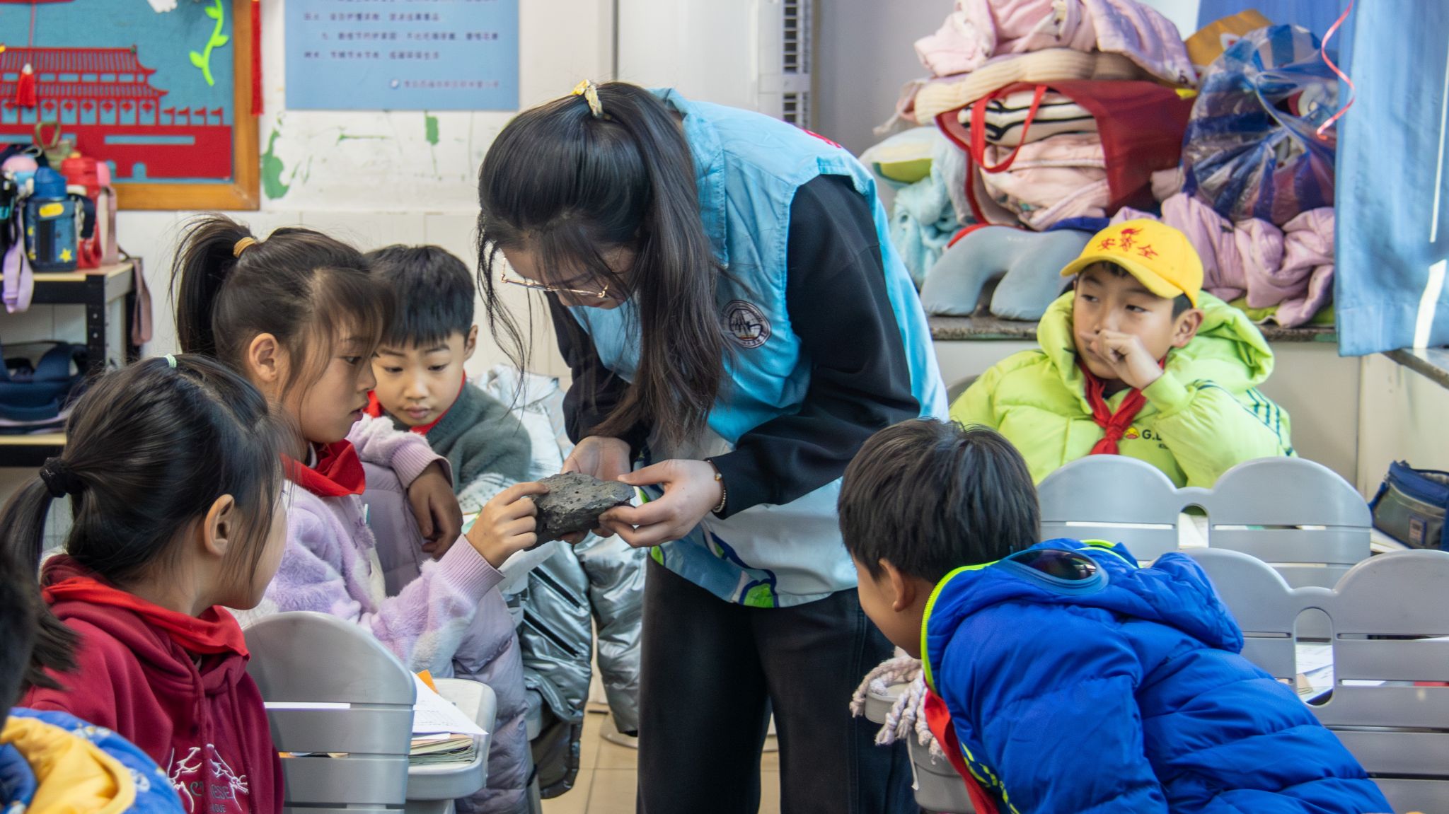 大学生志愿者前往积米崖小学进行地学科普 陆艳微摄影