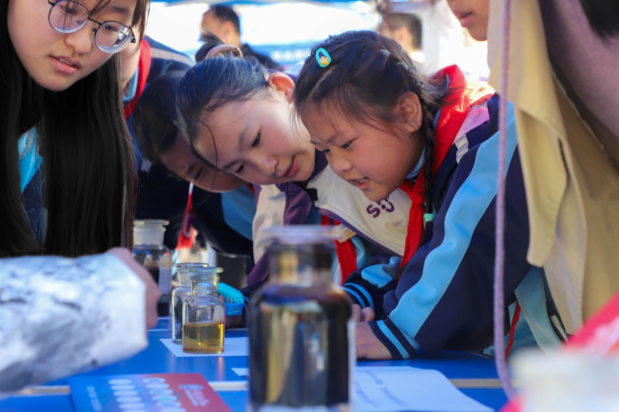 小学生在观察油样 葛家豪摄影