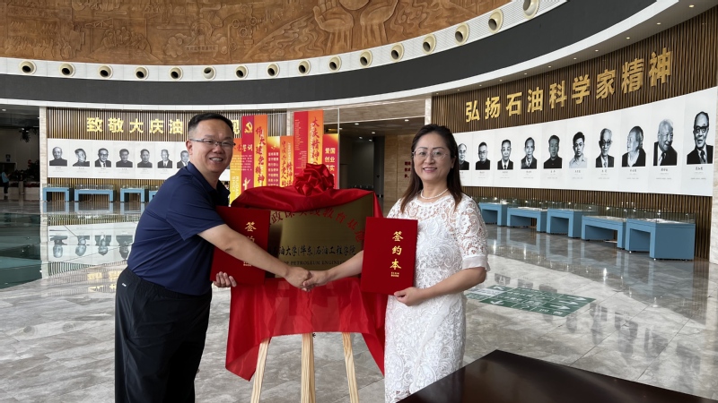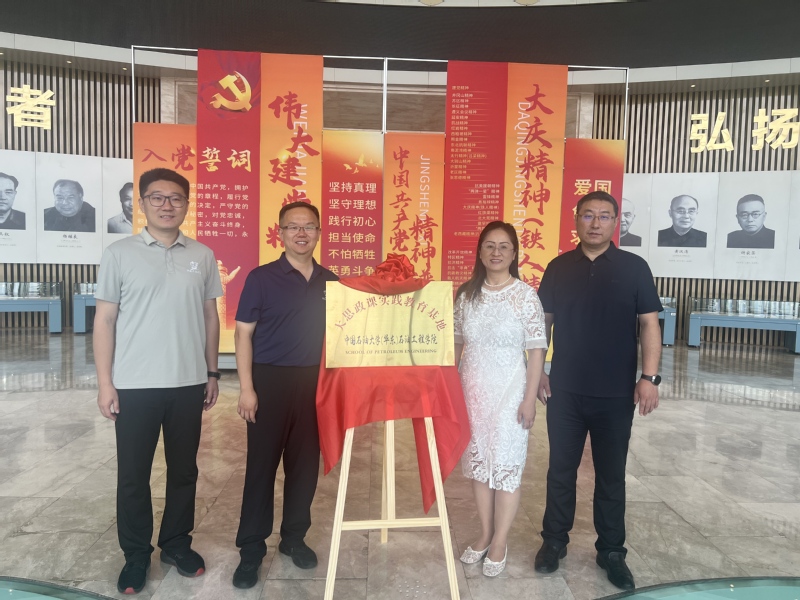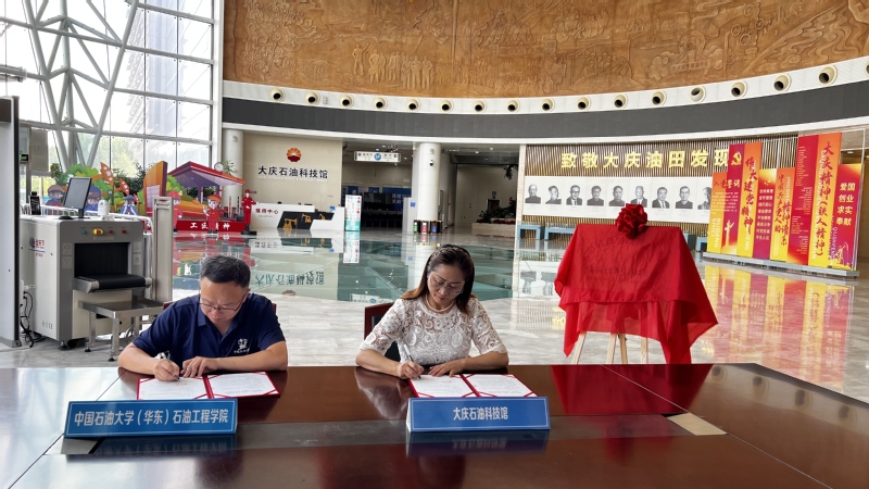 为深入贯彻落实习近平总书记关于建设“大思政课”的重要指示批示精神,按照学校党委关于全面推进“大思政课”建设的部署要求,7月15日,石油工程学院与大庆石油科技馆“大思政课”实践教育基地签约挂牌仪式顺利举行。贾寒教授代表学院与孙桂兰馆长签署共建协议并为基地揭牌。