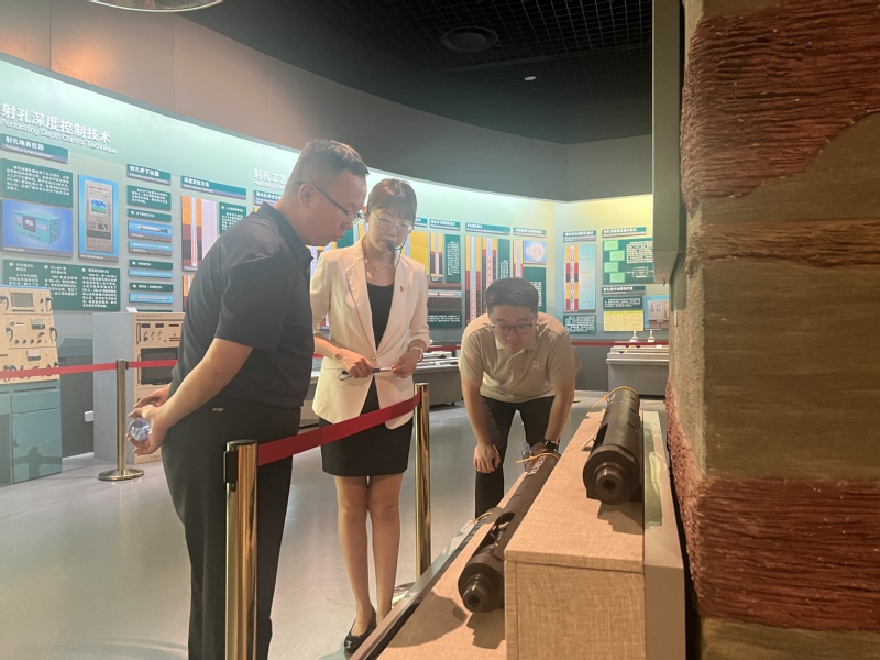 仪式结束后,双方共同参观了大庆石油科技馆的历程厅、科普厅及钻采厅。在专业讲解员刘阳的详细介绍下,深入了解油田开发历程、石油科普知识及钻采、测井等专业技术。在钻采厅的交流环节,双方围绕石油工程技术发展、人才培养模式及未来合作方向展开热烈讨论,进一步探索产学研协同创新的可行路径。